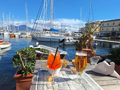 Al Barcadero Cafe is a small cafe located off the street leading to the Castel dell'Ovo. The cafe serves paninis and drinks, with the tables near the water.
